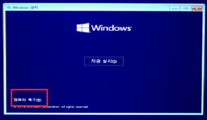 윈도우 설치 미디어를 넣고 설치 미디어를 부팅 1순위로 cmos에서 설정한 다음 설치 미디어로 부팅합니다.