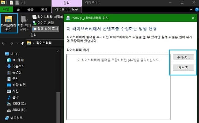 이 작업은 탐색기 상단의 라이브러리 관리 버튼을 누르고 할 수도 있습니다.