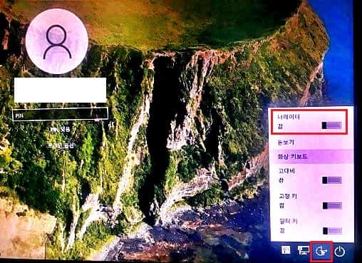 3. 윈도우즈 로그인 화면에서 설정