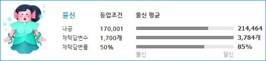 내공 170,001점, 채택답변수 1,700개, 채택답변율 50%