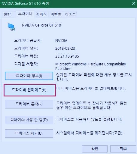 1. 장치관리자에서 드라이버 업데이트