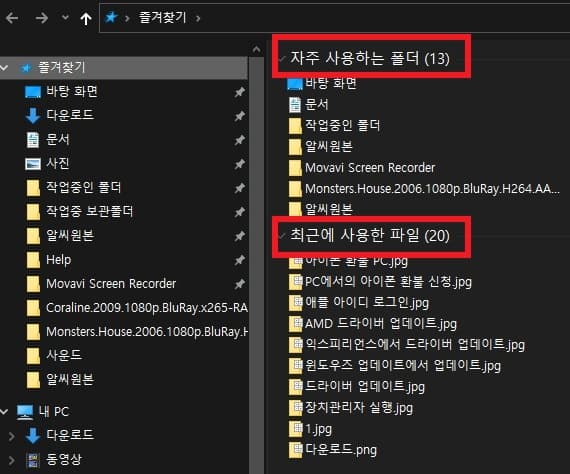 탐색기에서 최근에 사용한 파일 목록 나오게 설정하는 방법
