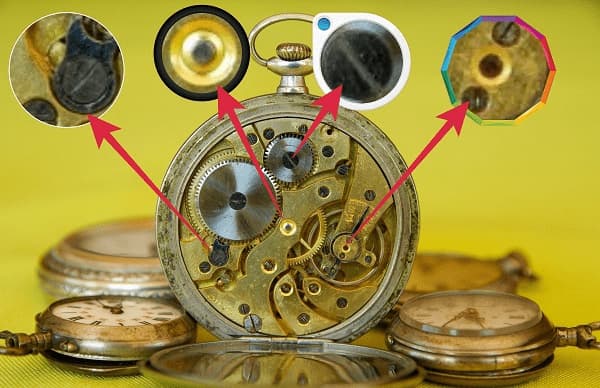아래의 이미지는 아날로그 시계를 분해한 후 특정 부분만을 확대하여 이미지의 여백에 보여주는 기법을 사용하였는 데 두 개의 이미지를 사용하는 것이 아니라 실제 하나의 이미지에서 특정 부분만을 확대하여 보여준 것입니다. 이러한 용도에 사용하는 도구가 바로 돋보기 툴입니다.