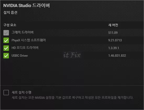 여기서 하단의 새로 설치 수행을 선택하여 모든 드라이버를 최신 버전으로 교체할 수도 있습니다.