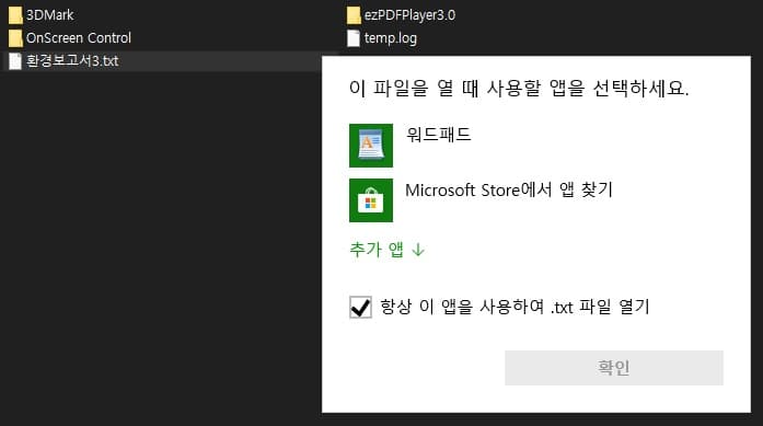 이제 메모장 파일이 정상적으로 설치되었는지 확인하기 위해 좀전에 열지 못하였던 txt 파일을 탐색기에서 다시 열어 봅니다. 이제 정상적으로 열리는 txt 파일을 메모장으로 확인하실 수 있을 것입니다.