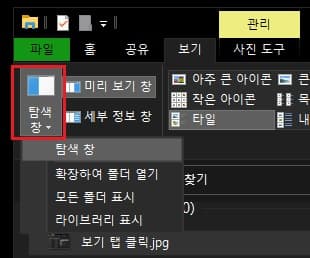 이 문제를 해결하기 위해서 탐색기 상단의 메뉴중 보기를 클릭합니다.