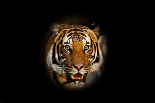 이제 마지막으로 우측의 레이어 옵션창에서 원하는 단색 배경색 또는 원하는 배경 이미지로 새로운 레이어를 만든 다음 드래그하여 호랑이 얼굴 레이어의 아래로 옮기면 작업이 종료됩니다. 아래의 이미지는 배경 레이어를 검은색 단색으로 한 최종 결과물입니다.