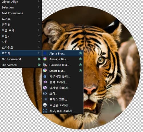 이제 상단 메뉴의 효과에서 흐리게의 하위 메뉴인 Alpha Blur를 클릭합니다.