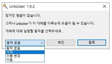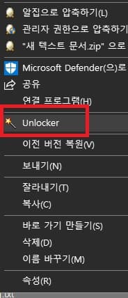 삭제에 어려움이 있는 파일 또는 폴더에서 마우스 우클릭후 Unlocker를 클릭한 후 사용하면 됩니다.