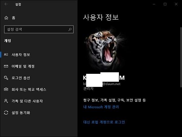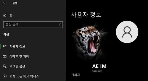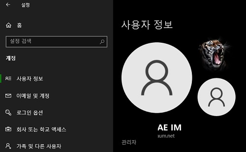 아까 다운로드해 둔 호랑이 사진을 선택하면 설정의 상단 부분에 변경된 프로필 사진이 나옵니다.