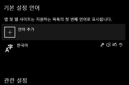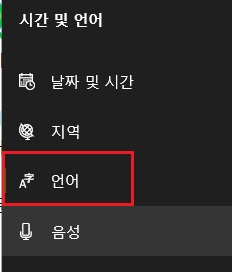 - '시간 및 언어' 설정에서 좌측의 항목 중 '언어'를 선택합니다.