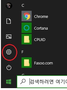 - 윈도우즈 설정으로 들어갑니다. 윈도우즈 설정은 마우스로 윈도우 시작을 클릭했을 때 톱니바퀴 모양으로 된 아이콘입니다.