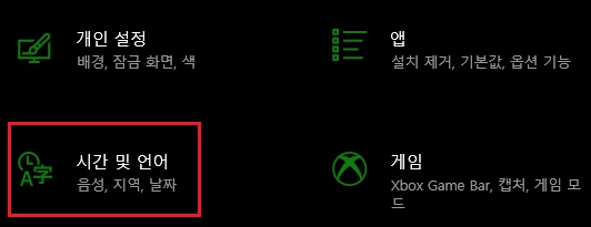 - 윈도우 설정에서 여러 가지 항목 중 '시간 및 언어'를 클릭합니다.