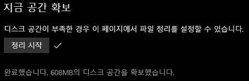 저장 공간이 부족해 자주 관리해 주어야 하는 PC의 근본적인 해결책은 용량이 넉넉한 SSD 등의 물리적인 디스크 추가일 것입니다. 하지만 여러 가지 이유로 현재의 상태에서 관리해 주며 사용해야 하는 PC의 경우에는 윈도우 자체의 공간 관리 설정인 '저장소 센스' 기능을 사용해 보시기 바랍니다.