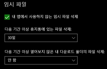 수동으로 이것 저것 저장 공간 관리를 위해 만져주는 것이 귀찮은 분들은 저장 공간 센스를 자동으로 설정해 두면 윈도우즈가 알아서 정리해 줍니다. 아마도 조금은 수고를 덜 수 있지 않을까 생각합니다.