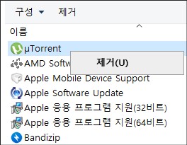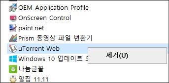 - uTorrent Web : 제어판의 프로그램 삭제에 목록이 생성되어 있으며 우클릭 후 나오는 제거 메뉴로 문제없이 제거되었습니다.