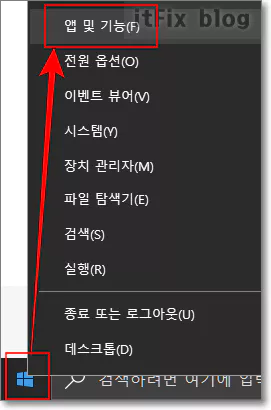 윈도우 시작버튼 로고를 마우스 우클릭한 다음 앱 및 기능을 클릭하고 유토렌트 앱을 찾습니다.