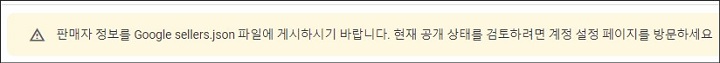 엊그제부터 PC 용 애드센스 상단에 '판매자 정보를 Google sellers.json 파일에 게시하시기 바랍니다. 현재 공개 상태를 검토하려면 계정 설정 페이지를 방문하세요.'라는 경고문구가 뜨기 시작했습니다.