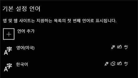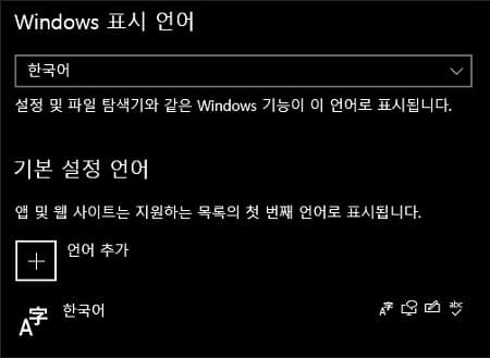 - 예를 들면 제 PC의 언어는 한국어 단일 언어로만 구성되어 있습니다.
