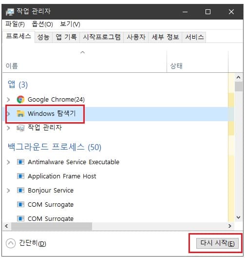 1. 윈도우 탐색기 다시 시작