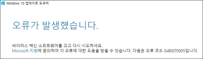"바이러스 백신 소프트웨어를 끄고 다시 시도하세요" 0x80070005 오류 해결 방법