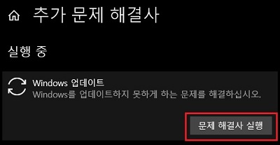 위의 경로를 통해 윈도우즈 업데이트 문제 해결사를 실행합니다.