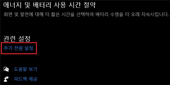 윈도우 설정 > 시스템 > 전원 및 절전 > 추가 전원 설정