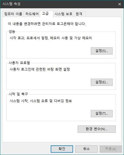 Sysdm.cpl 오류가 생겼을 경우의 대처 방법