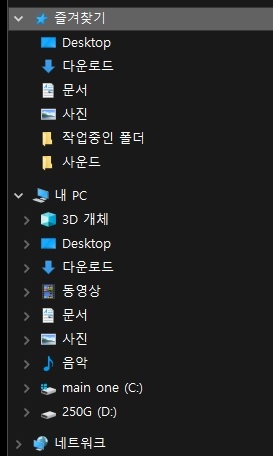 즐겨찾기의 하위 메뉴뿐만 아니라 내 PC의 하위 메뉴와 내용물에서도 바탕화면 바로가기가 사라졌습니다.