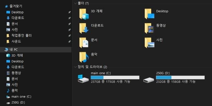 그런데 파일 탐색기에서 이것 저것 만져 보다 우연히 해결 방법을 찾았습니다.