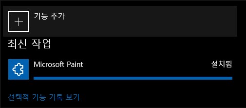 "윈도우 설정 > 앱 > 선택적 기능 > 기능 추가"에서 플러스 표시를 눌러 Microsoft paint를 체크 표시하고 설치를 눌러 추가해줍니다. 성공적으로 그림판이 추가되었을 경우에는 아래와 같은 이미지로 표시됩니다.