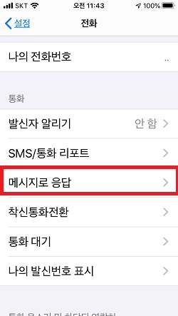 - 설정 > 전화 > 메시지로 응답