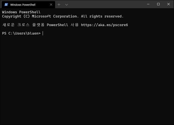 터미널 프리뷰의 실행 모습은 파워셀보다는 명령 프롬프트의 외관에 가깝지만 훨씬 더 깔끔하다는 인상을 줍니다. 실행했을 때의 기본 플랫폼은 파워셀을 실행합니다.