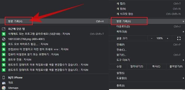 구글 크롬 웹 브라우저 방문 주소기록 제거 방법
