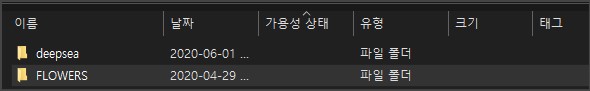 만약, 가용성 상태라는 분류항목을 자세히 옵션에서 새롭게 추가하였다면 파일 탐색기의 모습은 아래와 같이 가용성 상태라는 분류 항목이 추가된 상태로 보이게 됩니다.