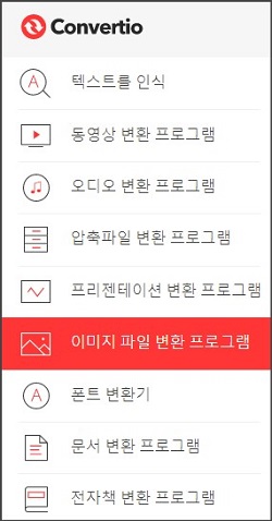 2. 드롭 다운 메뉴에서 이미지 파일 변환 프로그램을 클릭합니다.