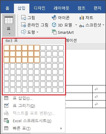 MS 워드에서 표 만들기는 버전업을 거듭할수록 발전하는 것이 느껴집니다. MS 워드의 표 만들기는 5가지 모두 상단 메뉴 아이콘 표를 클릭하여 시작합니다. 차례대로 살펴보겠습니다.