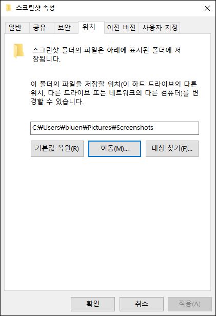 - C:\Users\사용자 계정명\Pictures\Screenshots