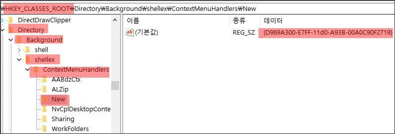 컴퓨터\HKEY_CLASSES_ROOT\Directory\Background\shellex\ContextMenuHandlers\New