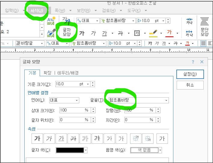 한컴 한글 워드 기본 글꼴 변경하기