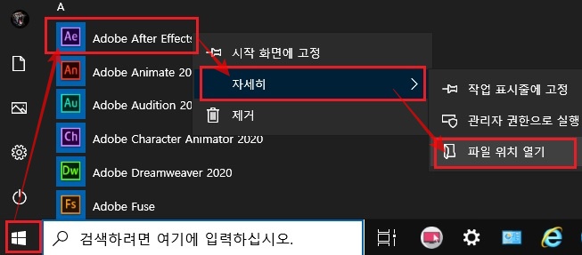 2. 이름을 바꾸고자 하는 앱에 마우스 커서를 가져간 다음 우클릭하고 '자세히 > 파일 위치 열기'를 누릅니다.