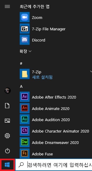 1. 작업 표시줄의 시작 버튼을 누릅니다.