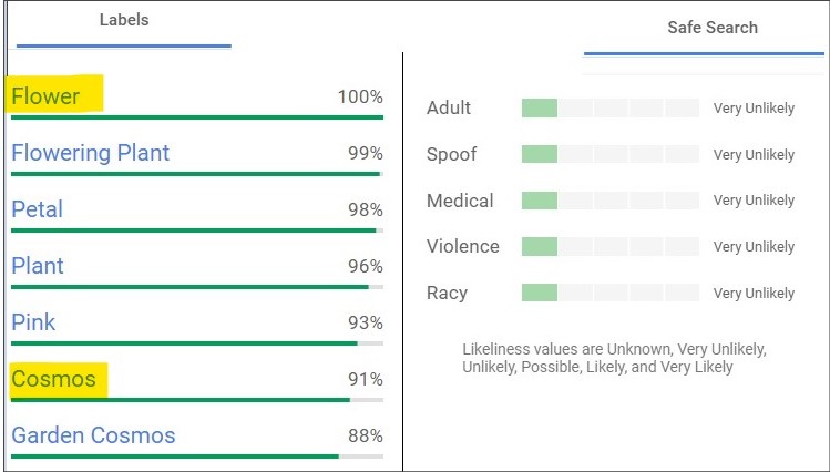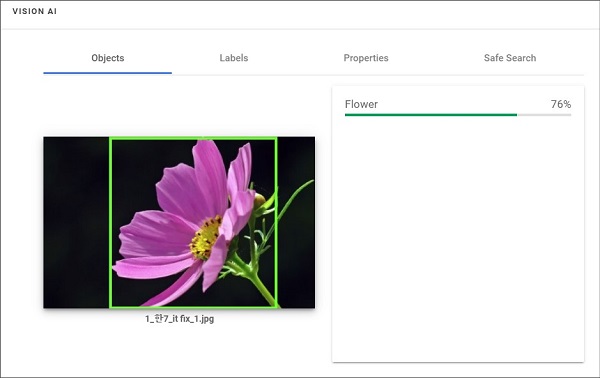 76%로 꽃이라고 인식했다. 역시나 대상에 대한 판별 능력은 구글답게 매우 우수합니다.