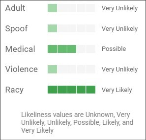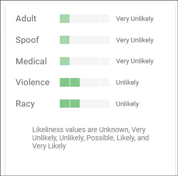 이번에도 상당히 정확하게 운동하는 개인 정도로 이미지를 파악하고 있었습니다. 그런데 흥미로운 건 Safe Search 부분입니다. 위의 사진에 대하여 구글 AI는 아래와 같이 등급을 매기고 있었습니다.