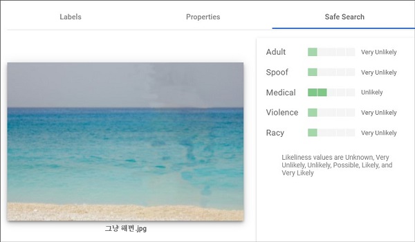 라벨이라는 탭을 누르면 왜 구글 이미지 대상 판단이 정확한지 이해가 갔습니다. 이미 이미지 검색으로도 유명한 구글이니까요. 그런데 제가 눈여겨 보고자 하는 부분은 Safe Search라는 부분입니다.