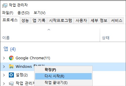 1. 탐색기 프로세서 재실행