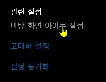 바탕화면 우클릭 > 개인 설정 > 테마 > 바탕화면 아이콘 설정 경로로 들어갑니다.