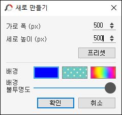 포토스케이프를 실행한 다음 새로 만들기를 선택하고 가로, 세로 500픽셀 정도의 파란색 정사각형 배경 이미지를 만듭니다.