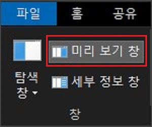 따라서, 파일 탐색기에서 파일 미리 보기를 하려고 한다면 파일 아이콘 레이아웃이 위쪽의 3가지중 하나여야 합니다.