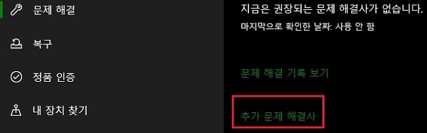 문제 해결 창이 로딩되면 추가 문제 해결사를 클릭합니다.